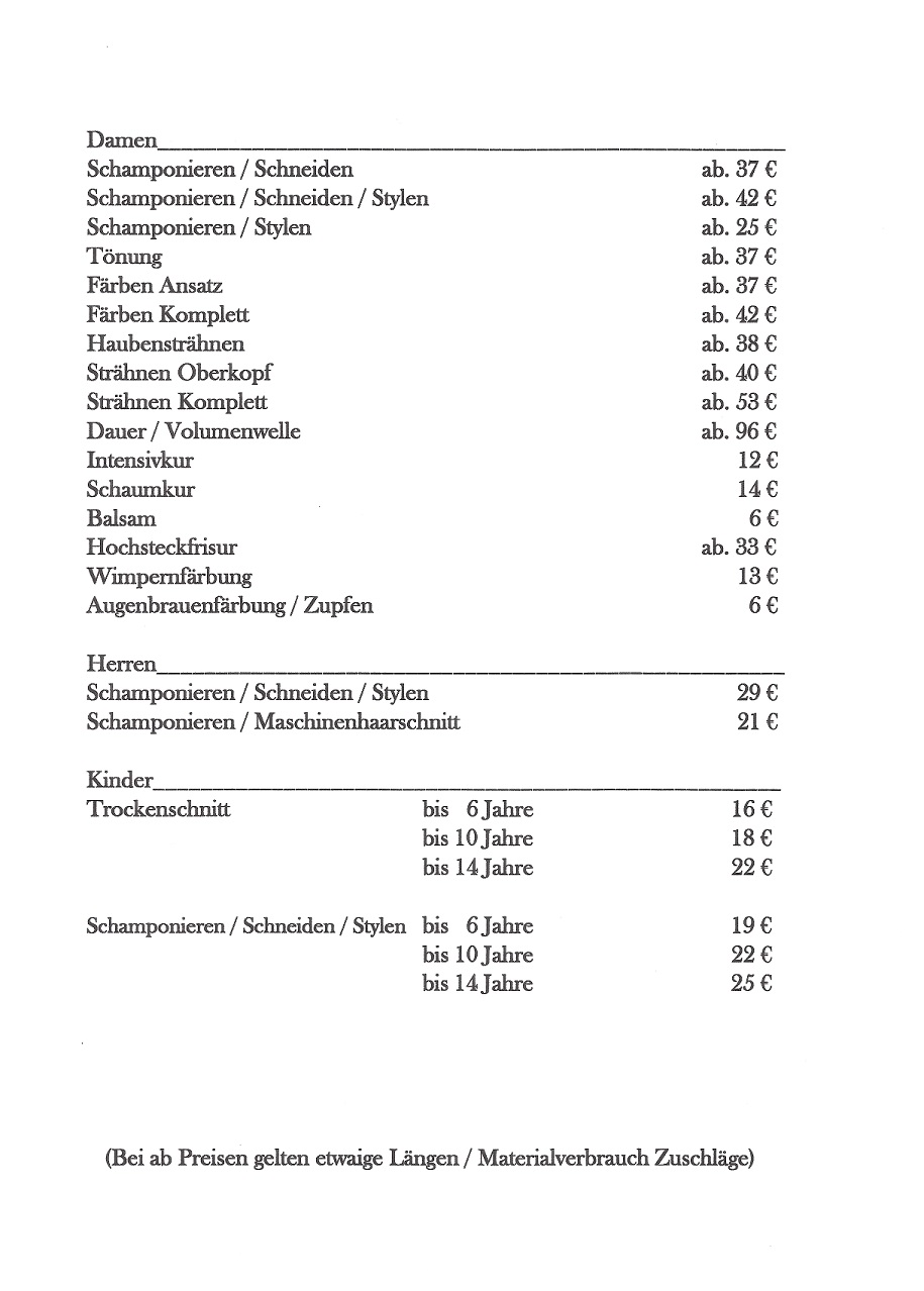 • Preisliste